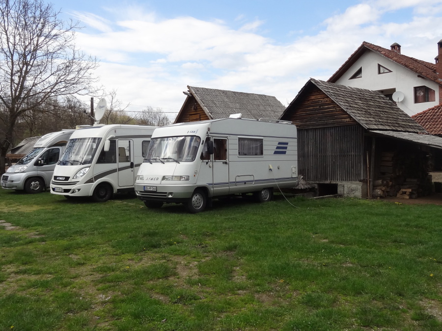 Nach der Besichtigung des Klosters fahren wir 4 km weiter zu einem „sehr schönen Campingplatz mit Strom und Dusche“. Aber es ist ein Stellplatz in einem Ferienhaus-Resort. Alles schön aber kein Campingplatz außerdem ist das Gelände sehr schief, so das ich mir einen Keil leihen muß!